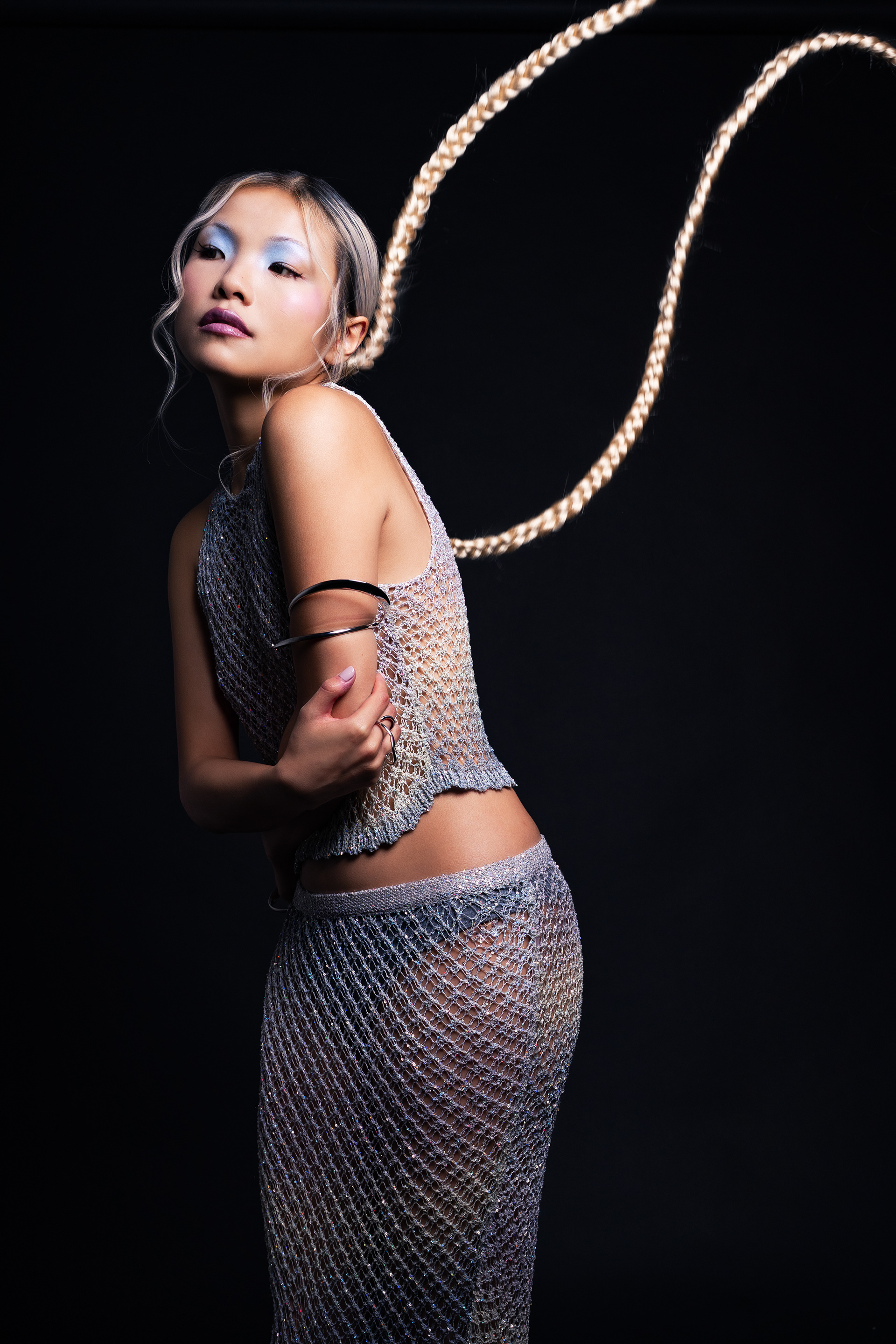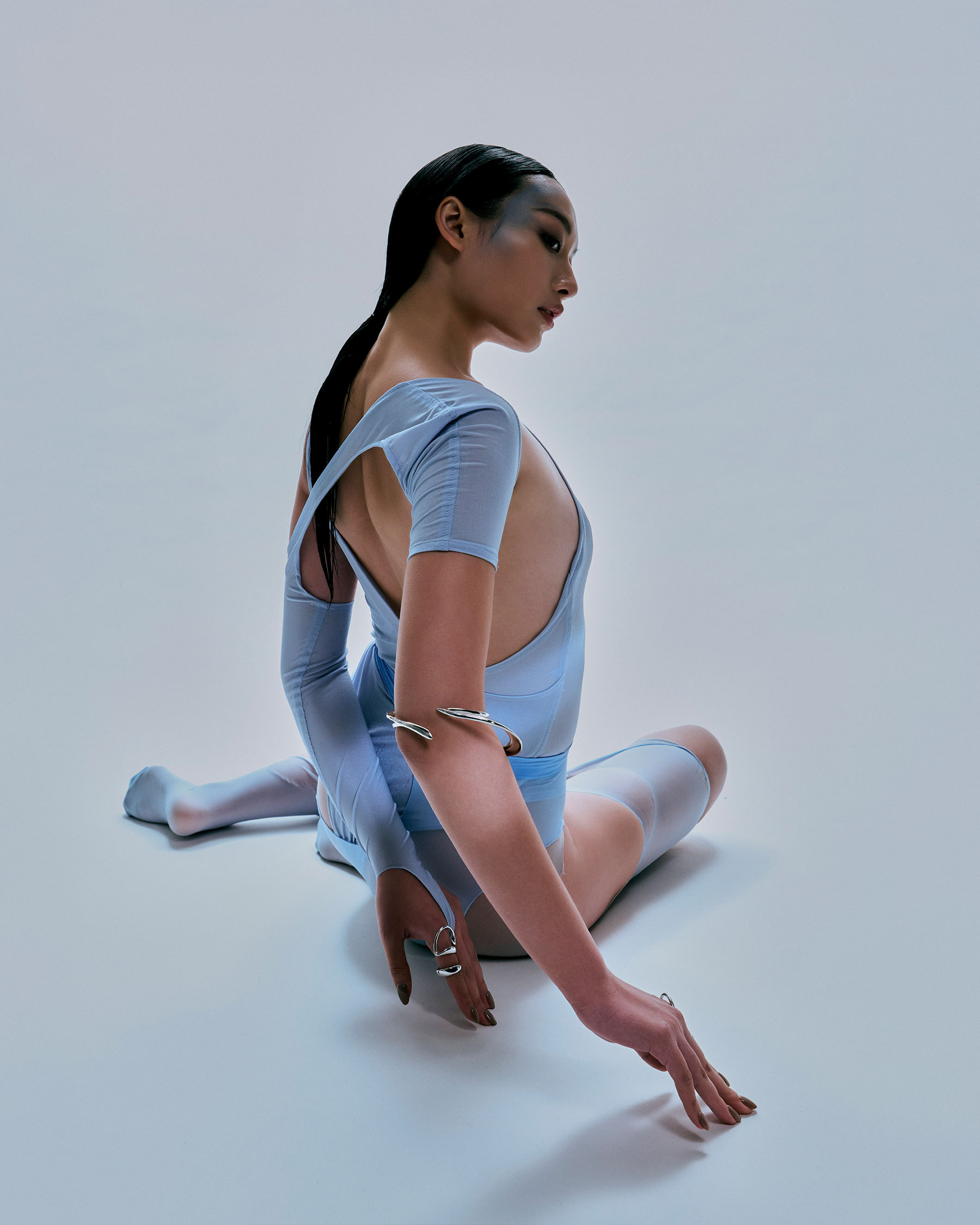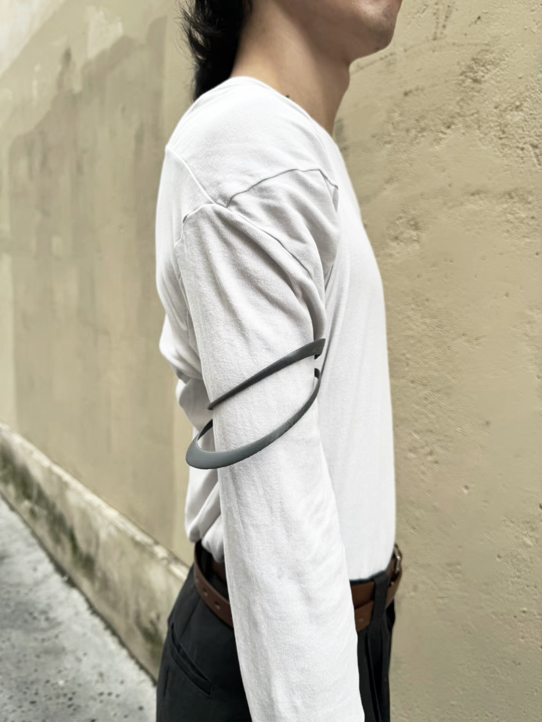 Through a self-initiated movement study, I placed LED strip lights on dancer Vian’s body as she improvised to different music. The luminous traces revealed lines and volumes shaped by emotion and gesture, inspiring me to explore how jewelry could attach to the body in unconventional ways and create space and architecture around it.